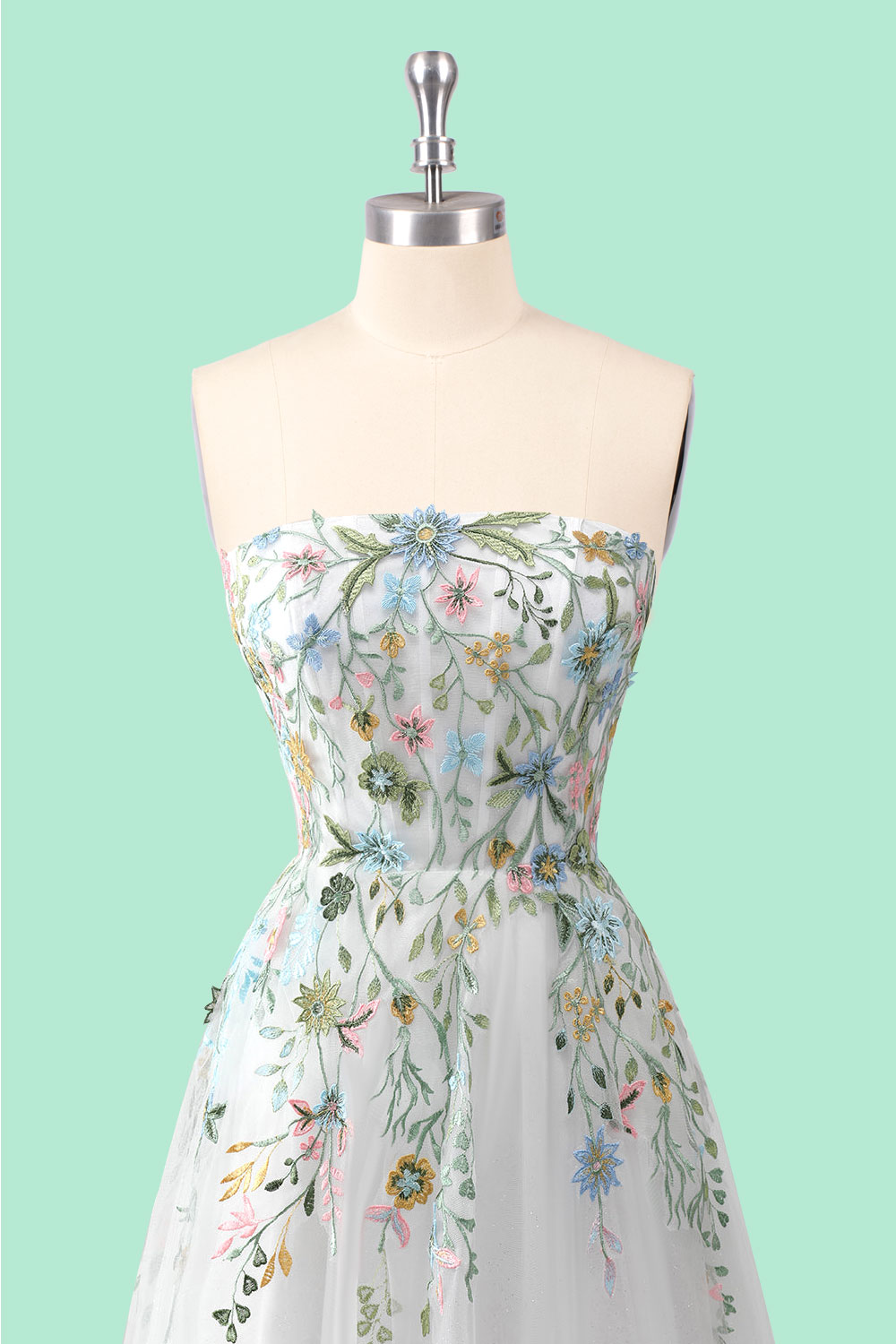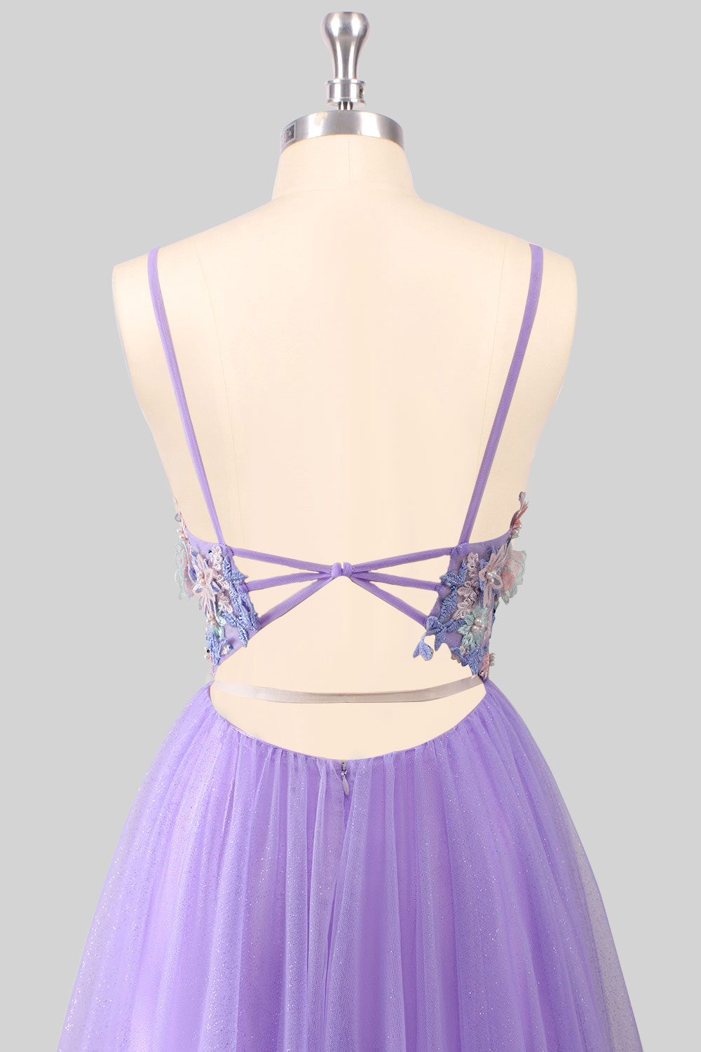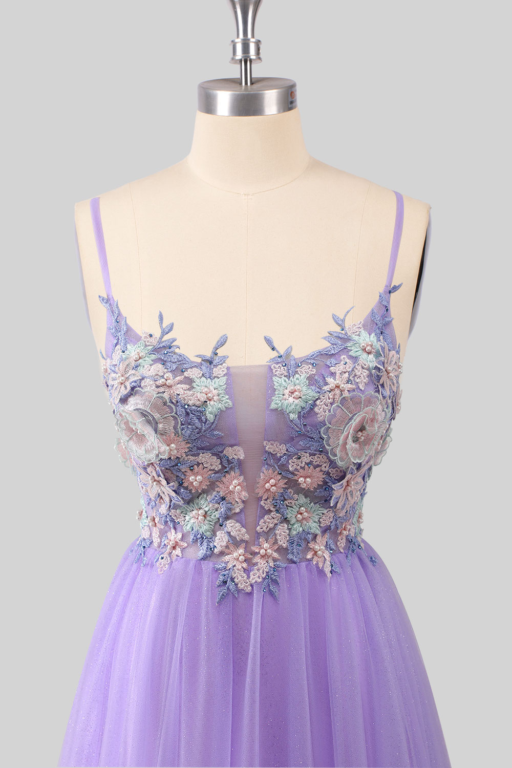 Custom floral embroidery sequin long prom dress, light purple sparkly corset evening gown