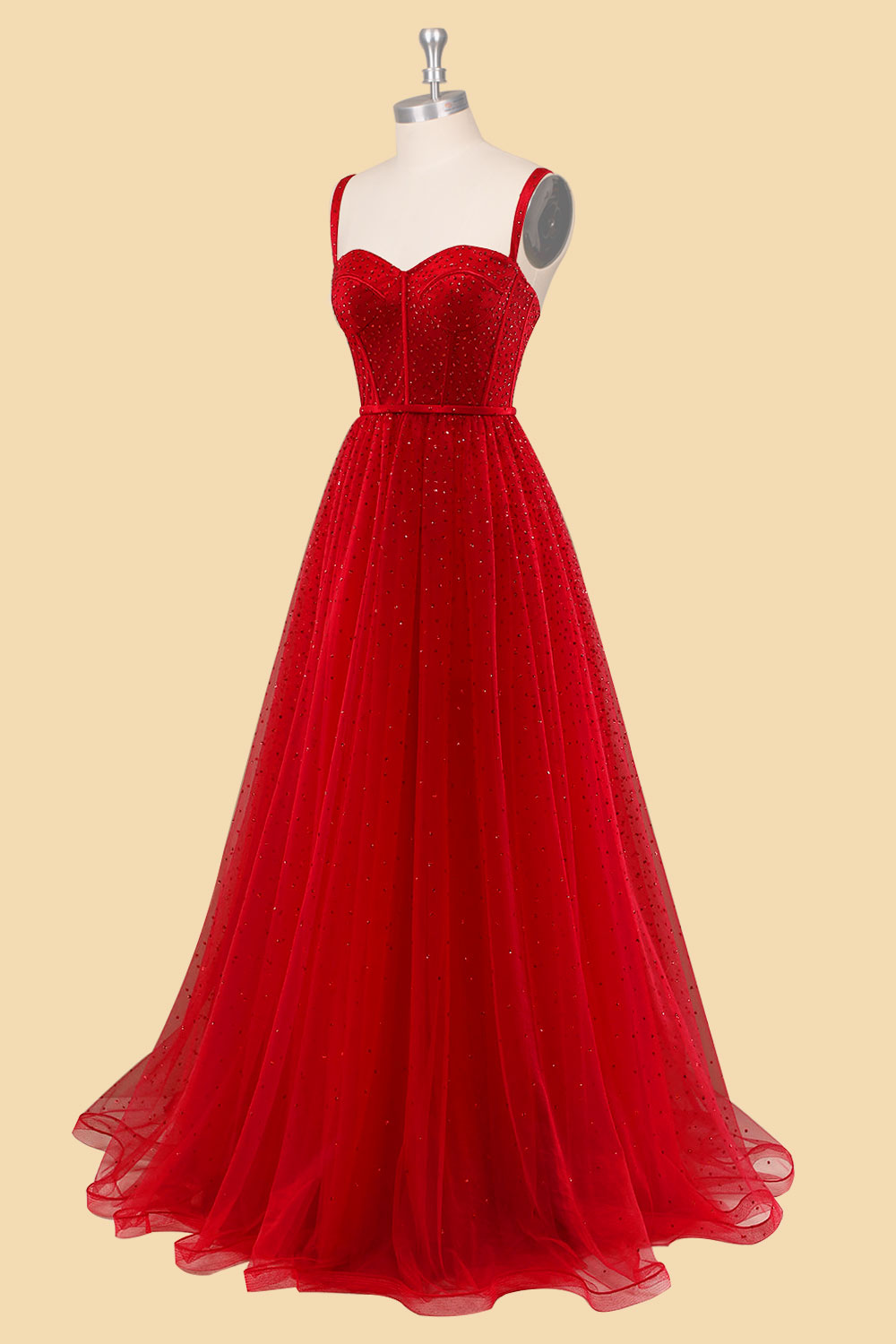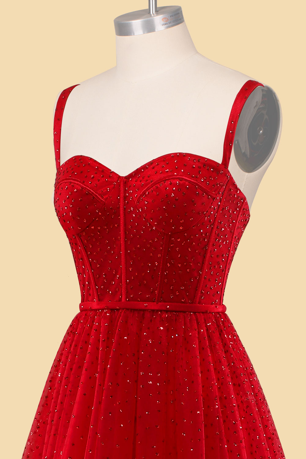 Custom sequin floral corset long prom dress, red satin slit party dress